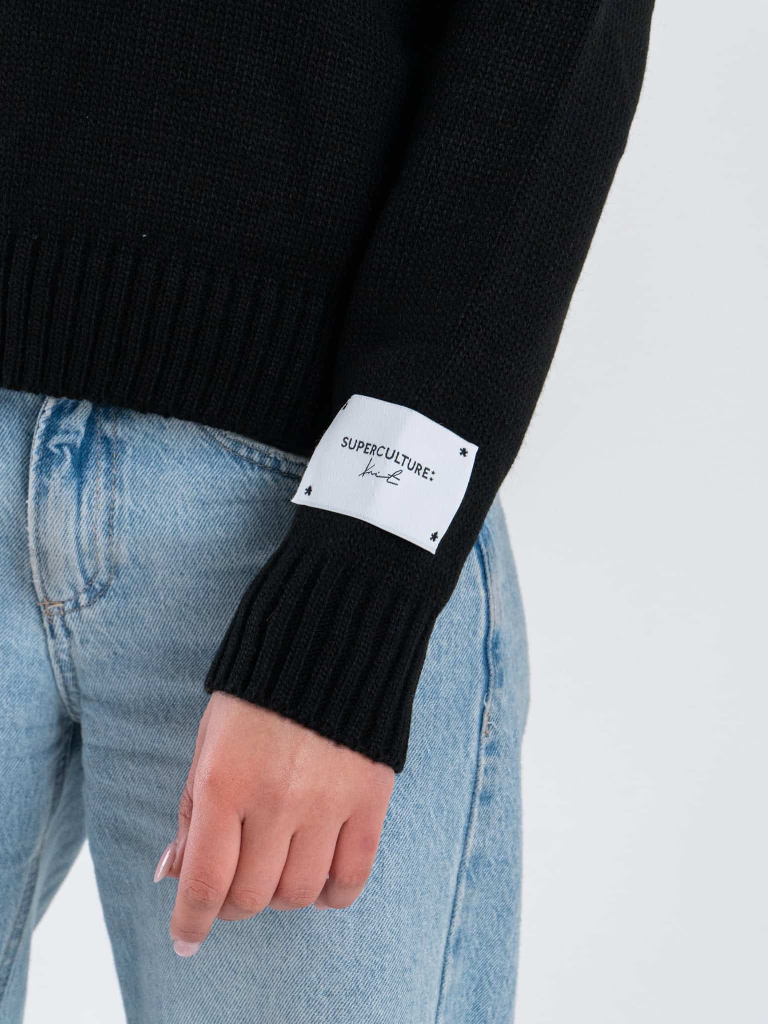 SUPERCULTURE Maglione regular da donna girocollo misto lana con ricamo MON AMOUR AK5117 Nero