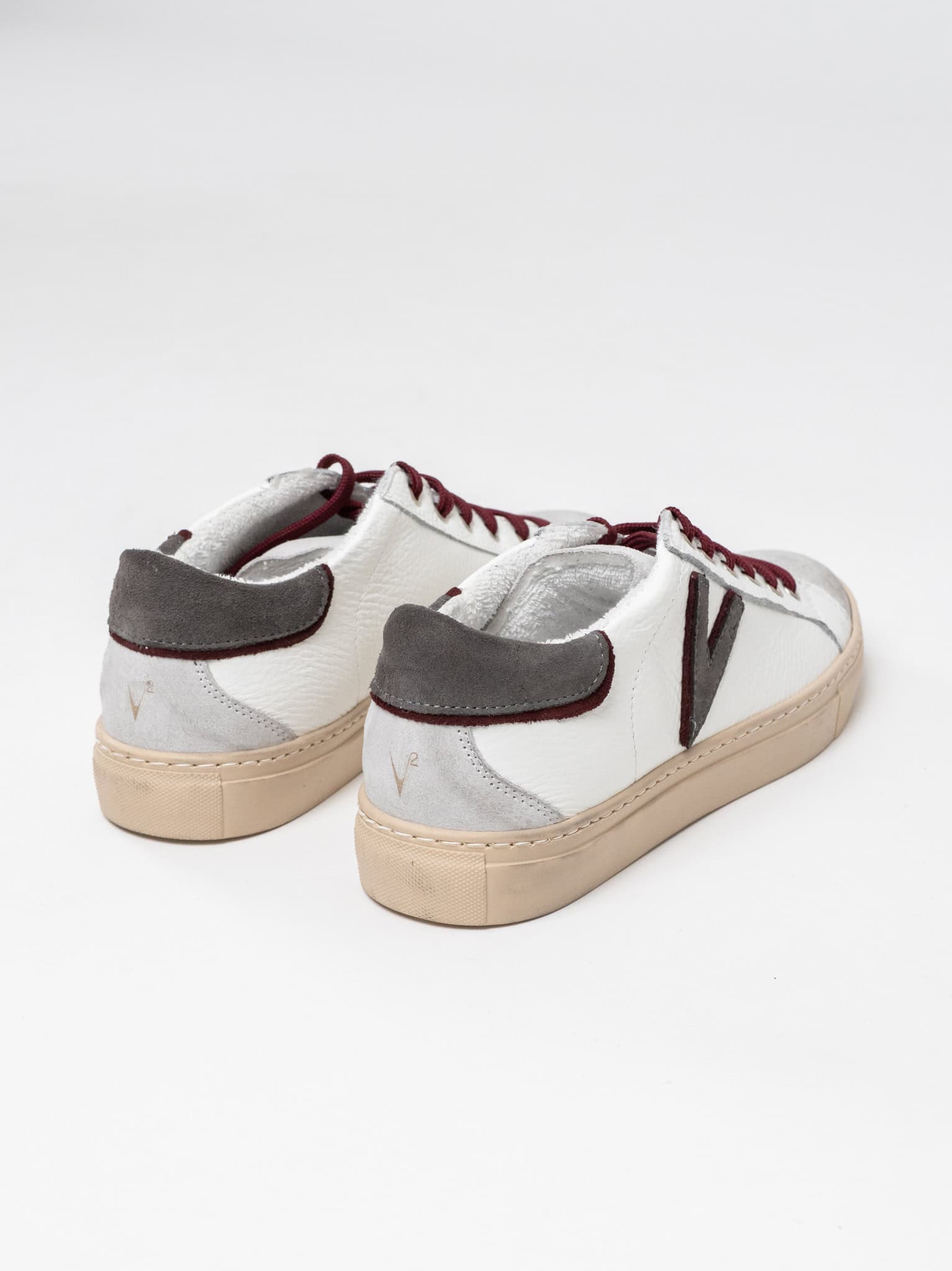 V2 Sneakers a suola bassa in pelle bianca con V bicolore a contrasto e tallone in camoscio SBIVOV2 Antracite