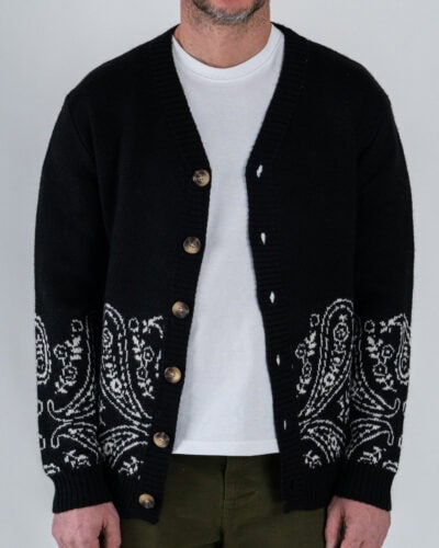 TOOCO Cardigan regular misto lana con bottoni e stampa bandana MVRS HALFDANA Black