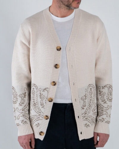 TOOCO Cardigan regular misto lana con bottoni e stampa bandana MVRS HALFDANA Crema