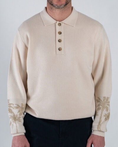 TOOCO Polo regular misto lana con bottoni e stampa palme MALIBÙ Crema