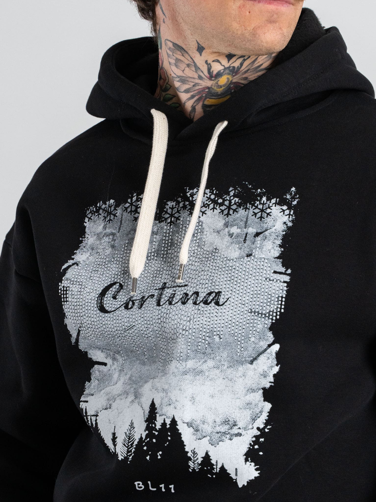 BL11 Felpa regular con cappuccio e stampa CORTINA Nera