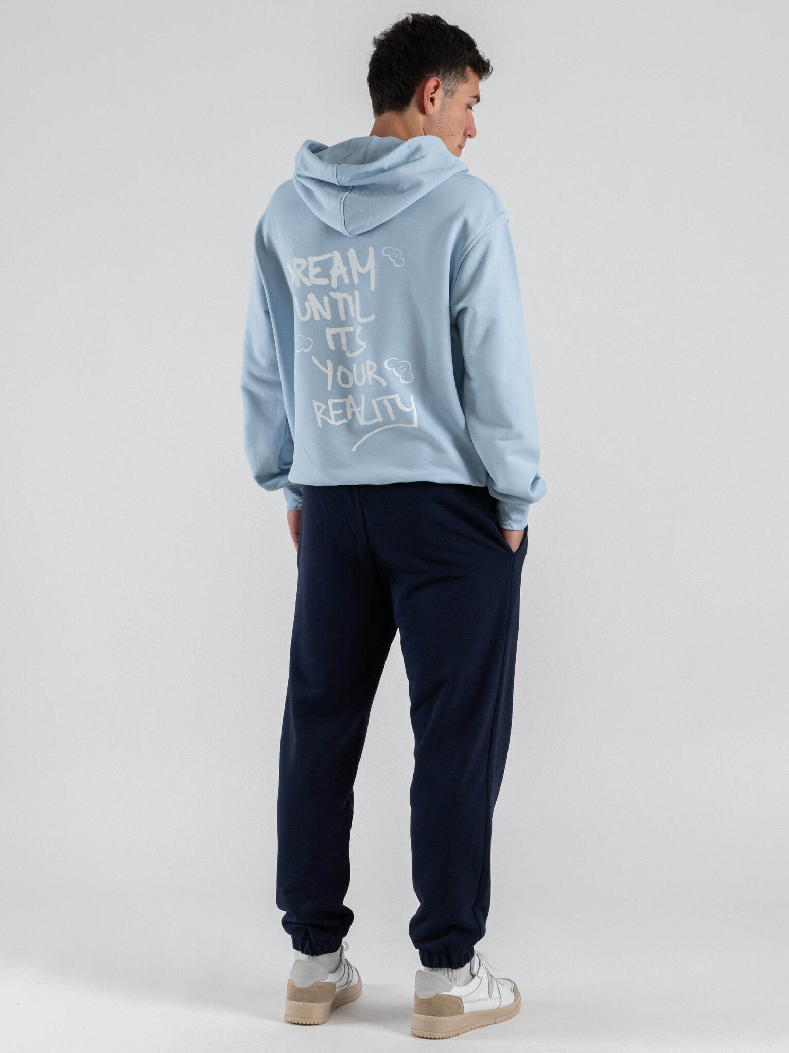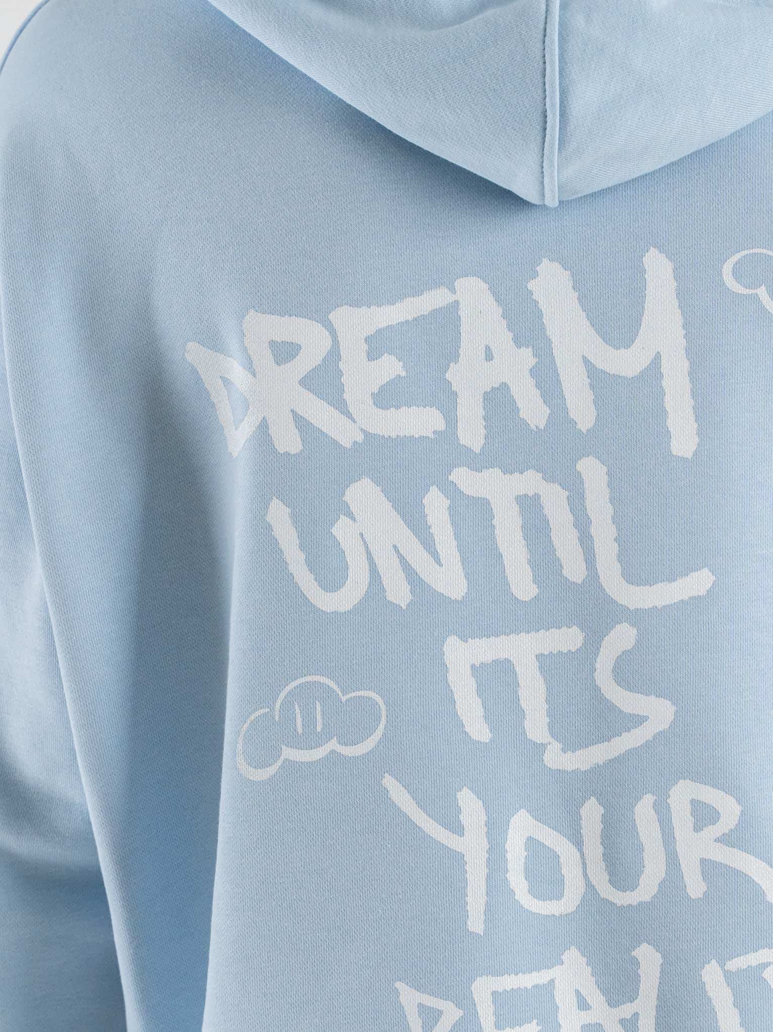 Il design essenziale è valorizzato dalla stampa DREAM sul retro, dettaglio che aggiunge personalità e un messaggio distintivo al look. Il colore celeste dona freschezza e luminosità, rendendo la felpa ideale per abbinamenti con jeans, pantaloni sportivi o gonne in tonalità neutre.