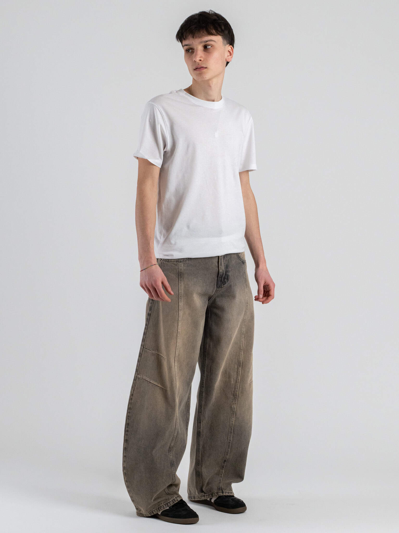 I jeans balloon con slavature sabbiate e cuciture in evidenza sono un capo dal carattere deciso e contemporaneo. Il taglio balloon offre una vestibilità ampia e confortevole, con volumi morbidi che donano personalità al look.